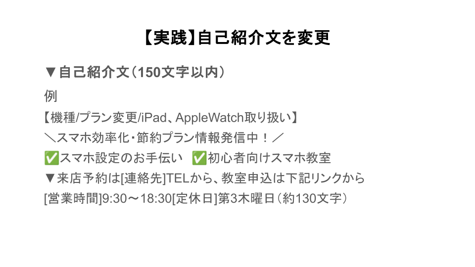 そこで今回、プロフィール文にスマホ教室の案内と申込リンクへの誘導文を追記いただきました。