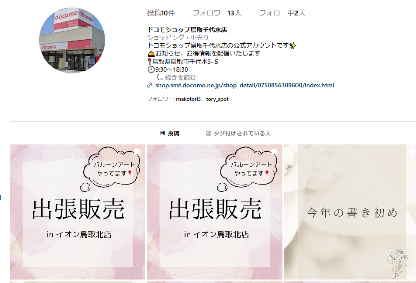 ドコモショップイオンモール鳥取北店(旧 千代水店)のInstagram公式アカウント