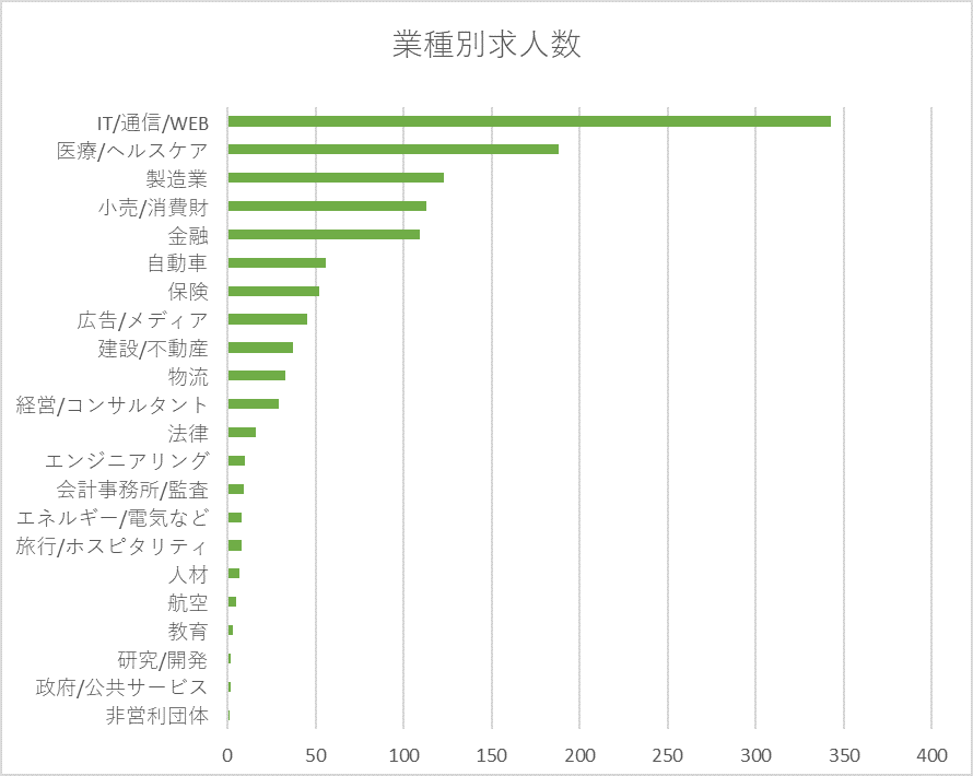 なかでもIT、製薬、製造の分野を得意としており、求人もこの3分野が最も多く掲載されています。