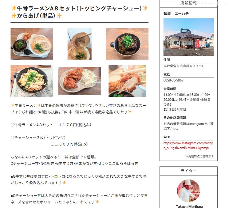 取材した店舗はインフルエンサー自身が運用するSNSでも紹介されています。