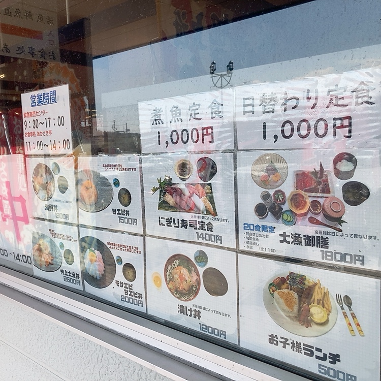 一番人気の海鮮丼や、1,000円で楽しめる日替わり定食や煮魚定食などリーズナブルなもの、お子様ランチや単品のエビフライやエビマヨ、デザートにもぴったりなアイスクリームまで!