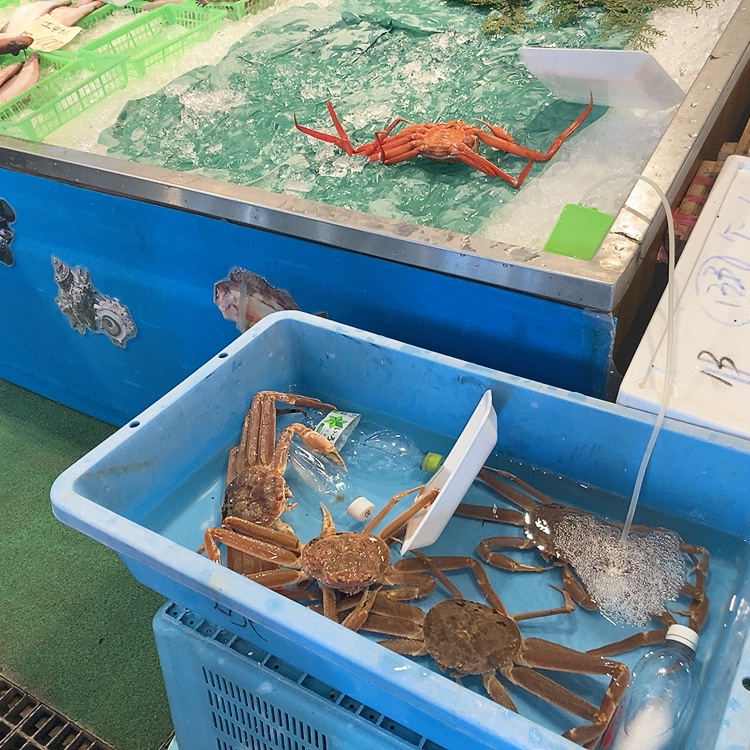 琴浦グランサーモン、紅ズワイガニ、甘エビ、モサエビ、いくら、シマメイカ、つぶ貝、ぶりののった海鮮丼!