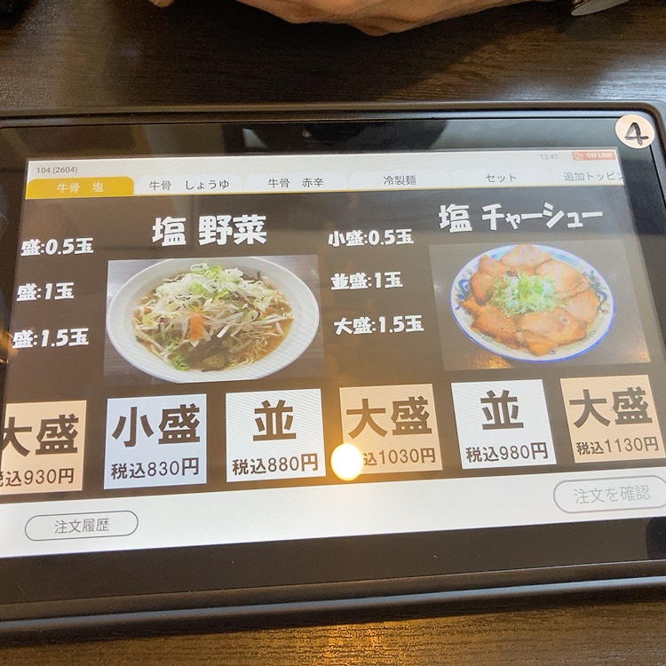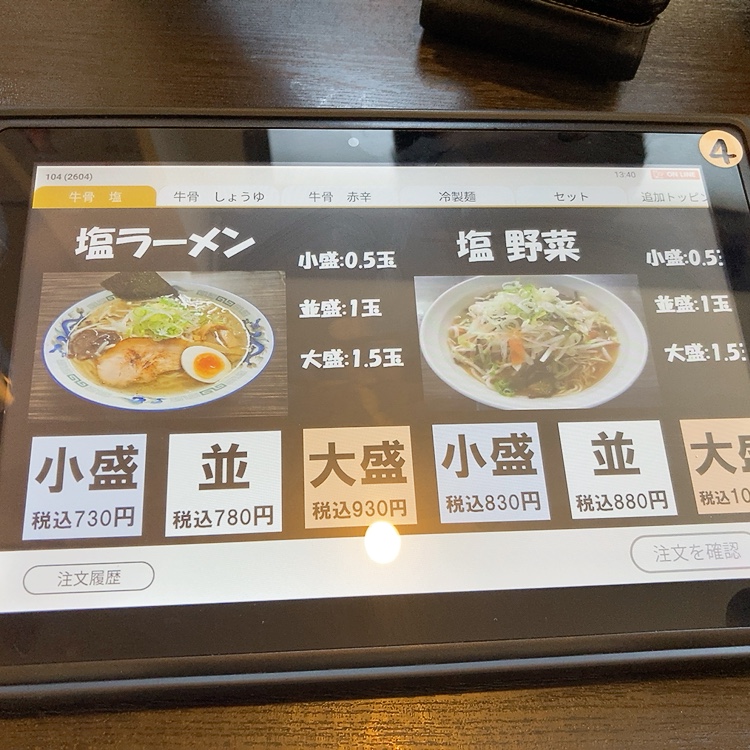 牛骨ラーメンは「塩・醤油」の二種類。