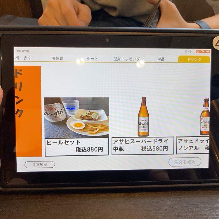 各テーブルに専用のタブレットがあり、そちらから注文します。