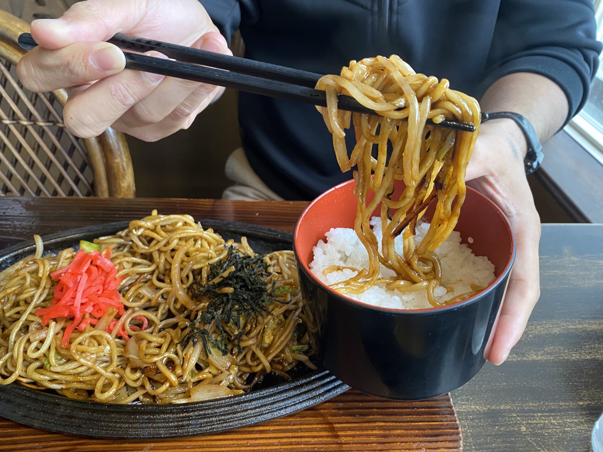 後悔ゼロ、満足度100%の鉄板焼きそばに、ご飯セットおすすめです。