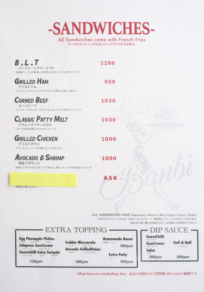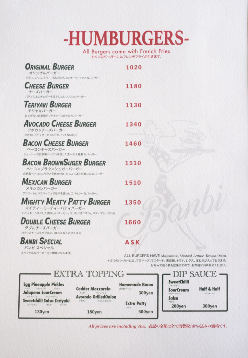 この記事では、「Bugers & Sandwiches Banbi(バンビ)」のお店の様子や注文した料理の感想、店舗情報などをご紹介します。
