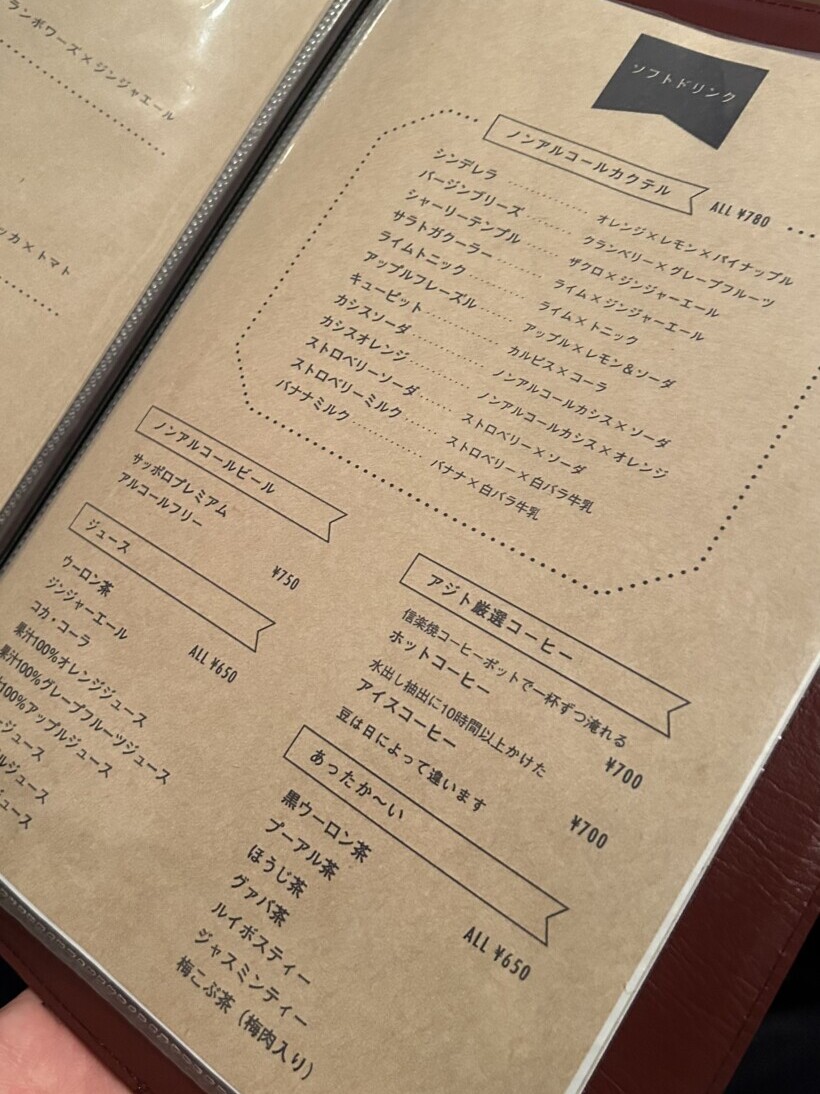 こちらのお店は、アルコールメニューはもちろん、ノンアルコールメニューも種類豊富に揃っています。