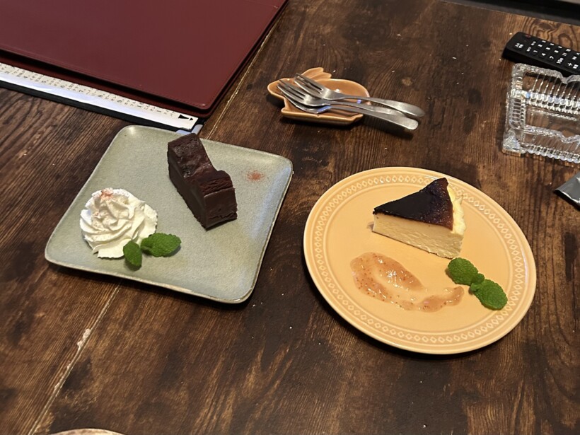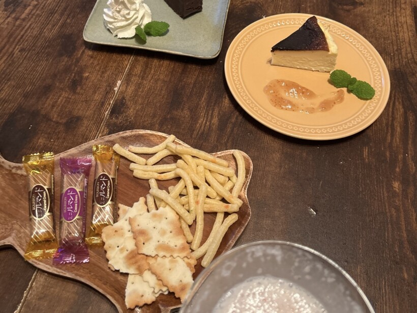 今回は、ノンアルコールカクテルのバナナミルクと、スイーツのバスクチーズケーキ・ガトーショコラを注文しました。