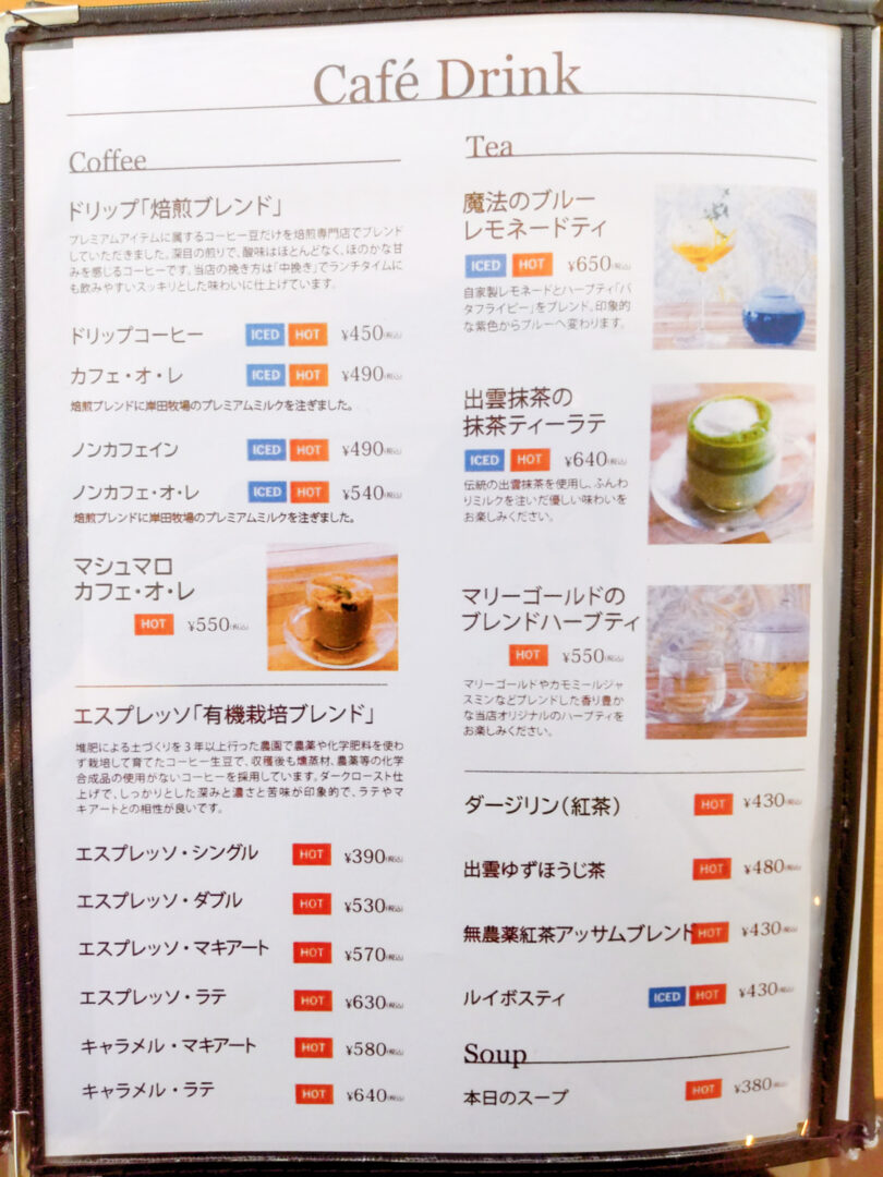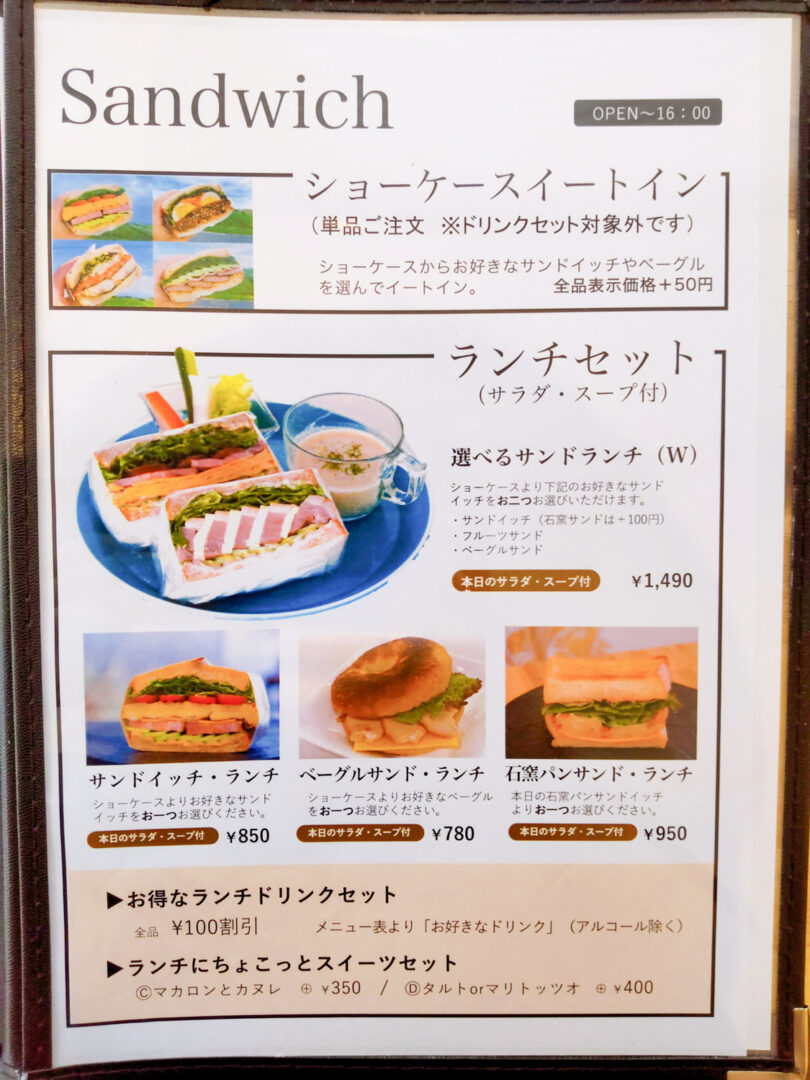 サンドイッチ・ランチは¥850、ドリンクセットは¥350です。