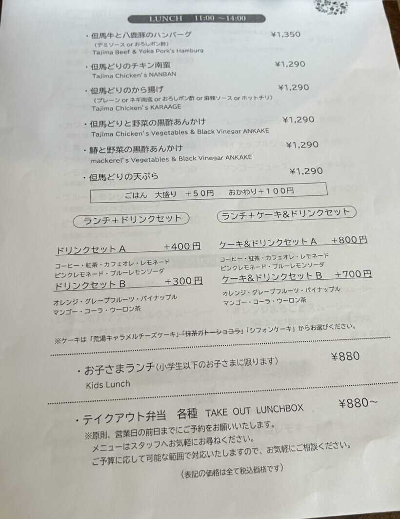 ランチメニューは、但馬鶏や但馬牛などが使われているランチが6種類もあります。