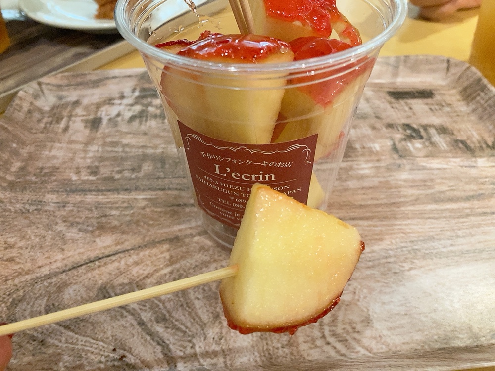 シフォンケーキの他にも人気メニューには、「りんご飴」があります。