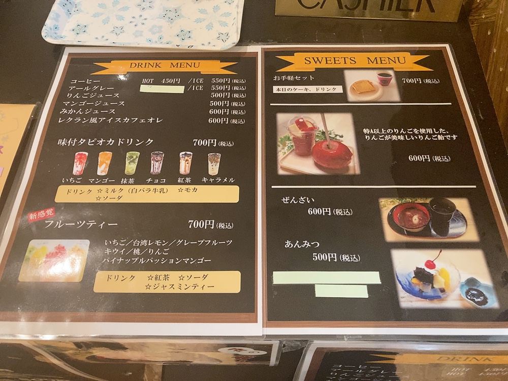 シフォンケーキの他にも、タピオカドリンクやフルーツティー、あんみつにぜんざいなど、和とアジアの甘味が勢ぞろい。