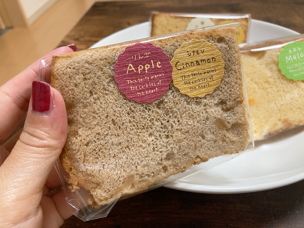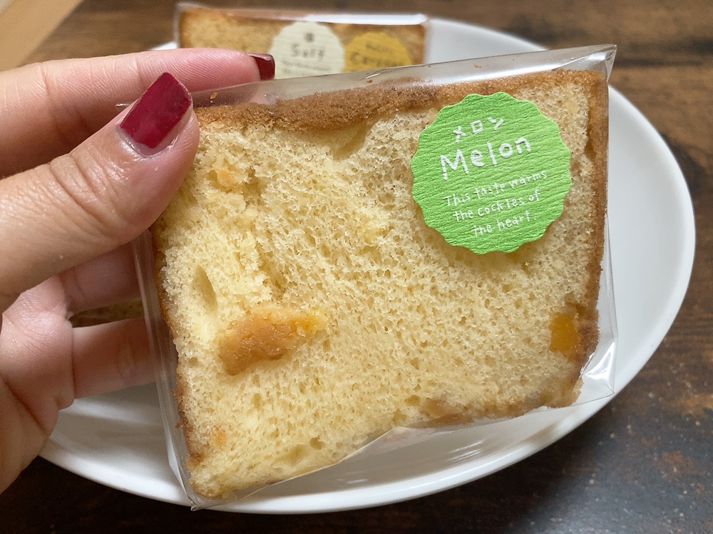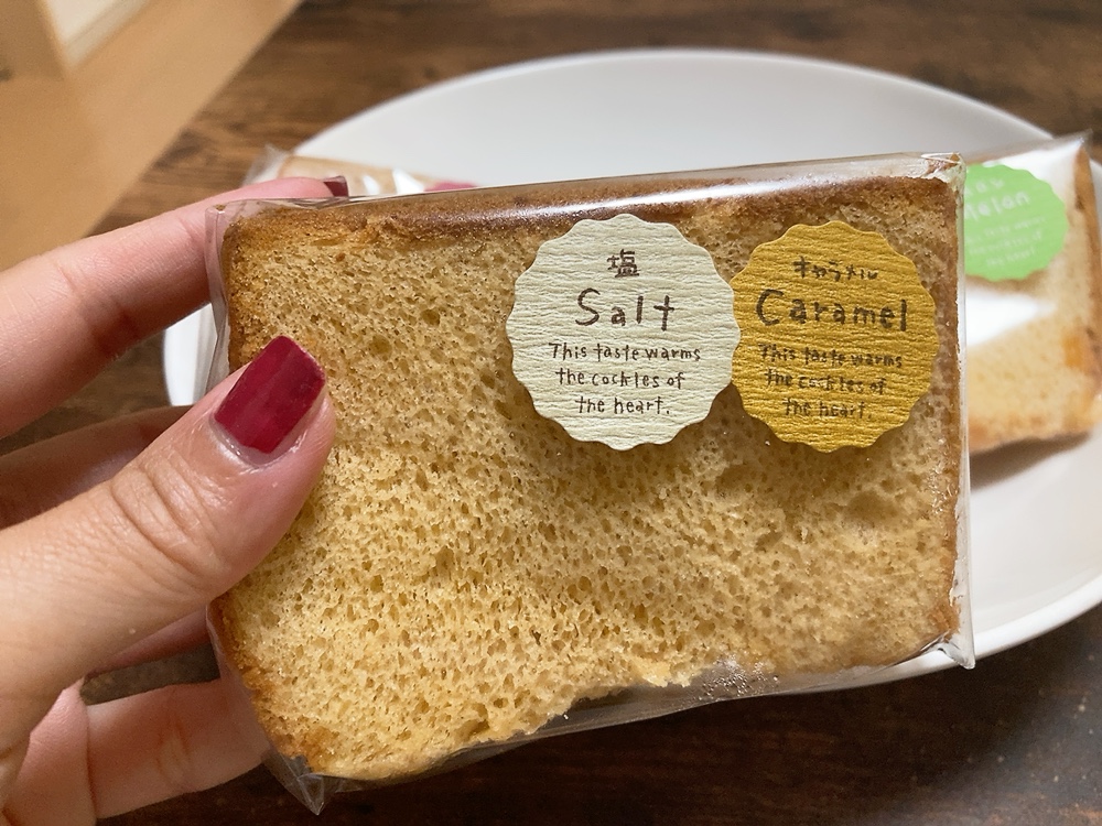 今回は、人気フレーバーの、「りんご」「塩キャラメル」、個人的に気になった「メロン」のシフォンケーキをいただきました。