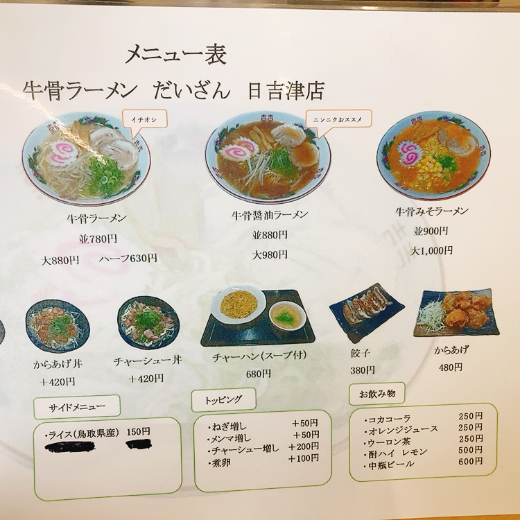 牛骨ラーメンとからあげ丼のセットになっている「だいざんセット」も気になりました。