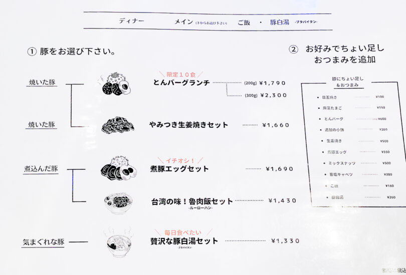 お店の前のメニューボード。