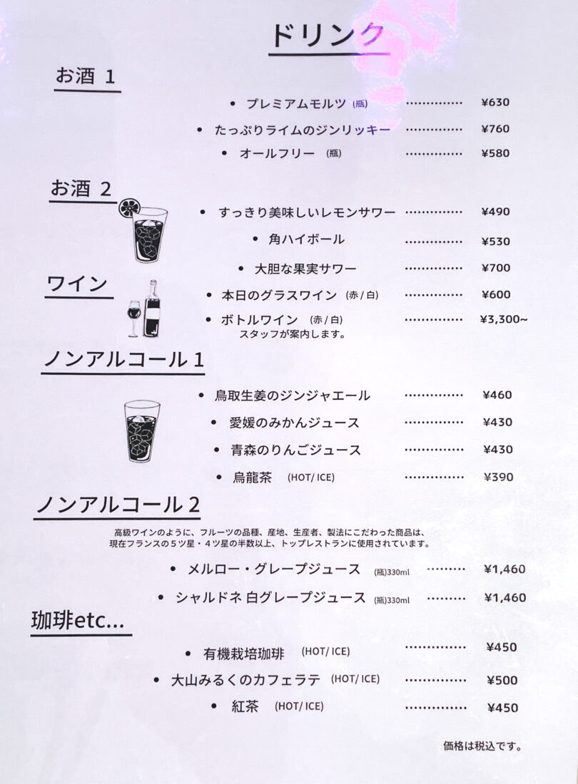 お店のメニュー