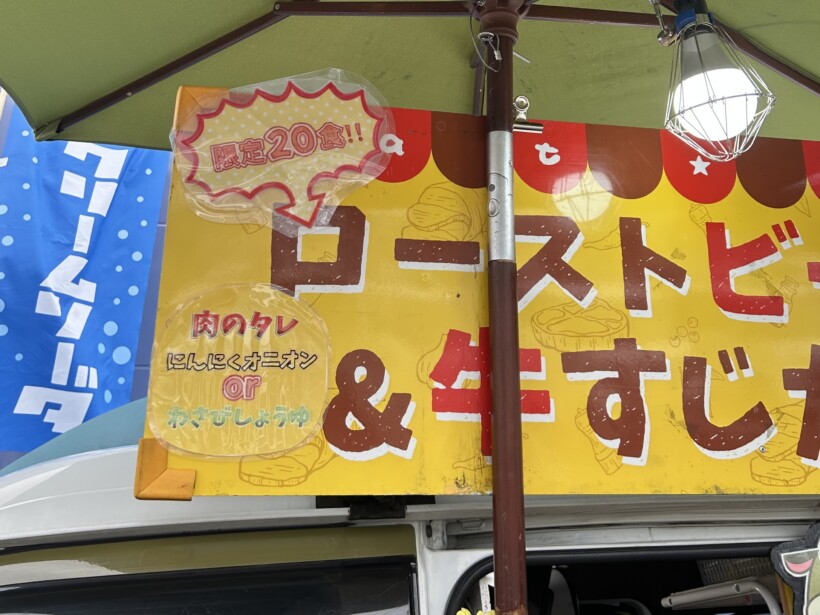 キッチンカーの横にある「黒毛和牛」と書かれた旗が目印!