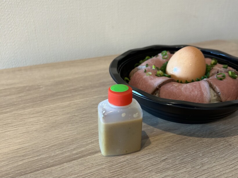 ガーリックオニオンソースは、パンチのある味わいでローストビーフともご飯とも相性抜群。