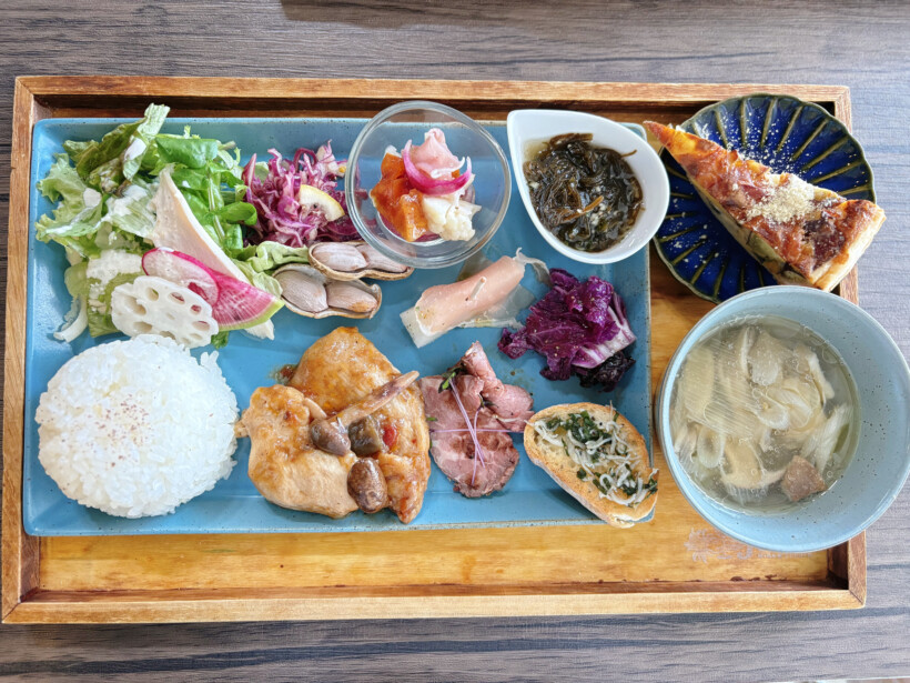 地元の恵みがぎゅっと詰まったプレートは、見た目にも彩り豊かで食欲をそそります。