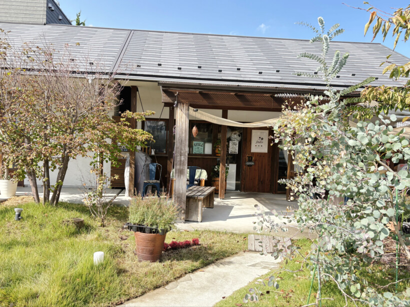 天気の良い日は、ベンチやテラスでゆったり過ごすのもおすすめです。駐車場はお店のすぐ前にあります。