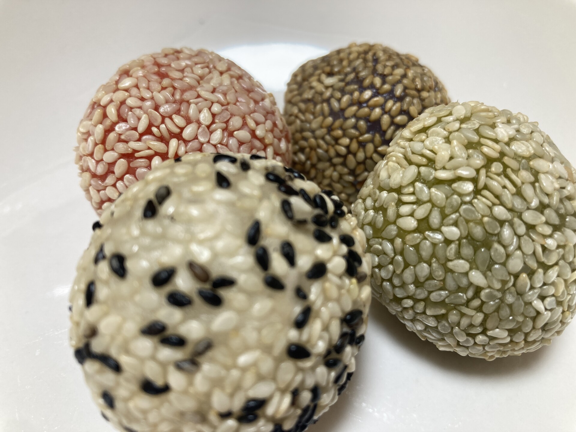 揚げたての香ばしさと、もちもち食感が魅力のごま団子。