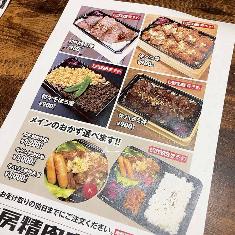 メニュー表:店内飲食は不可、テイクアウトのみです。