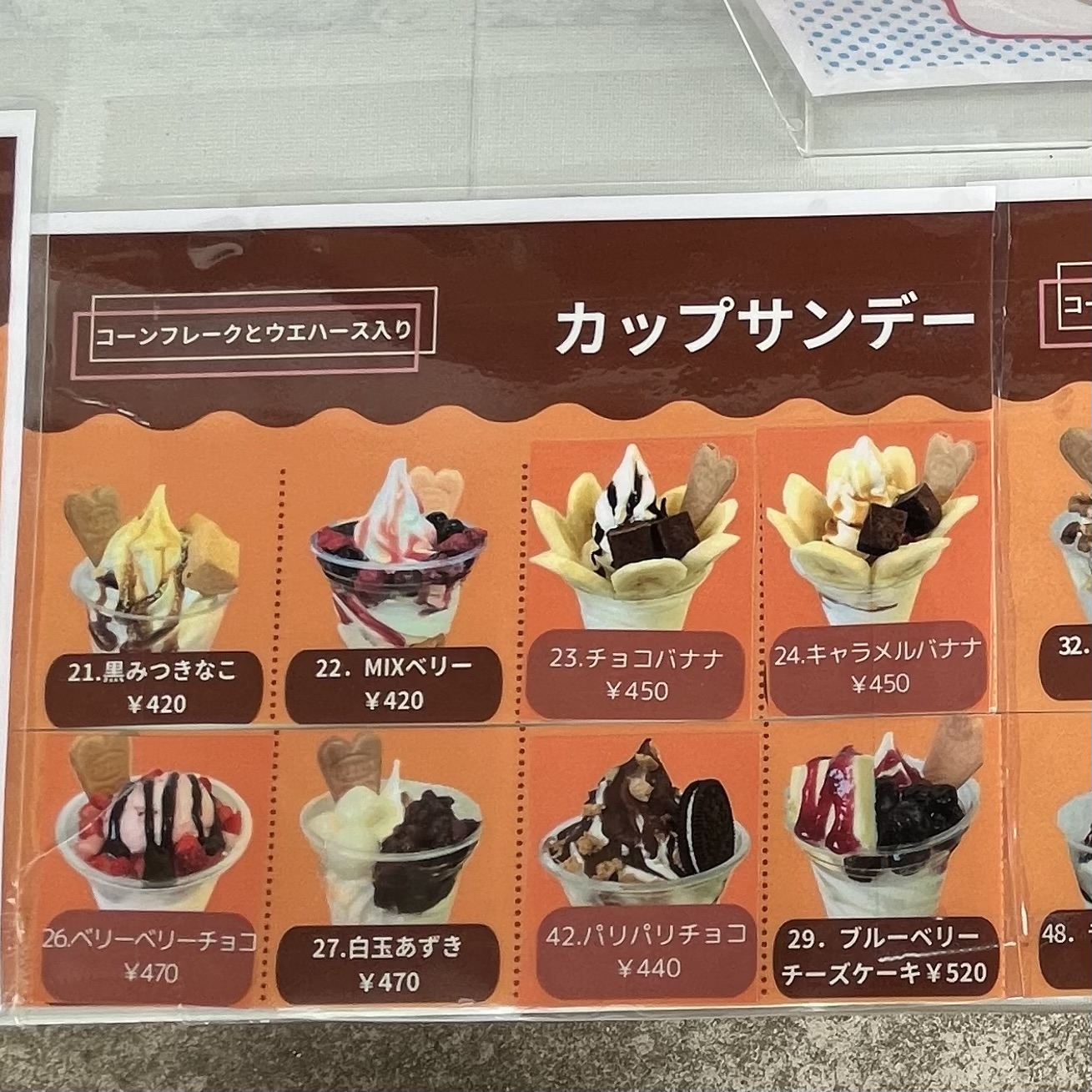 そんな立地からは想像できない、本格的でバリエーション豊かなソフトクリームやパフェ、シェイクがずらり!