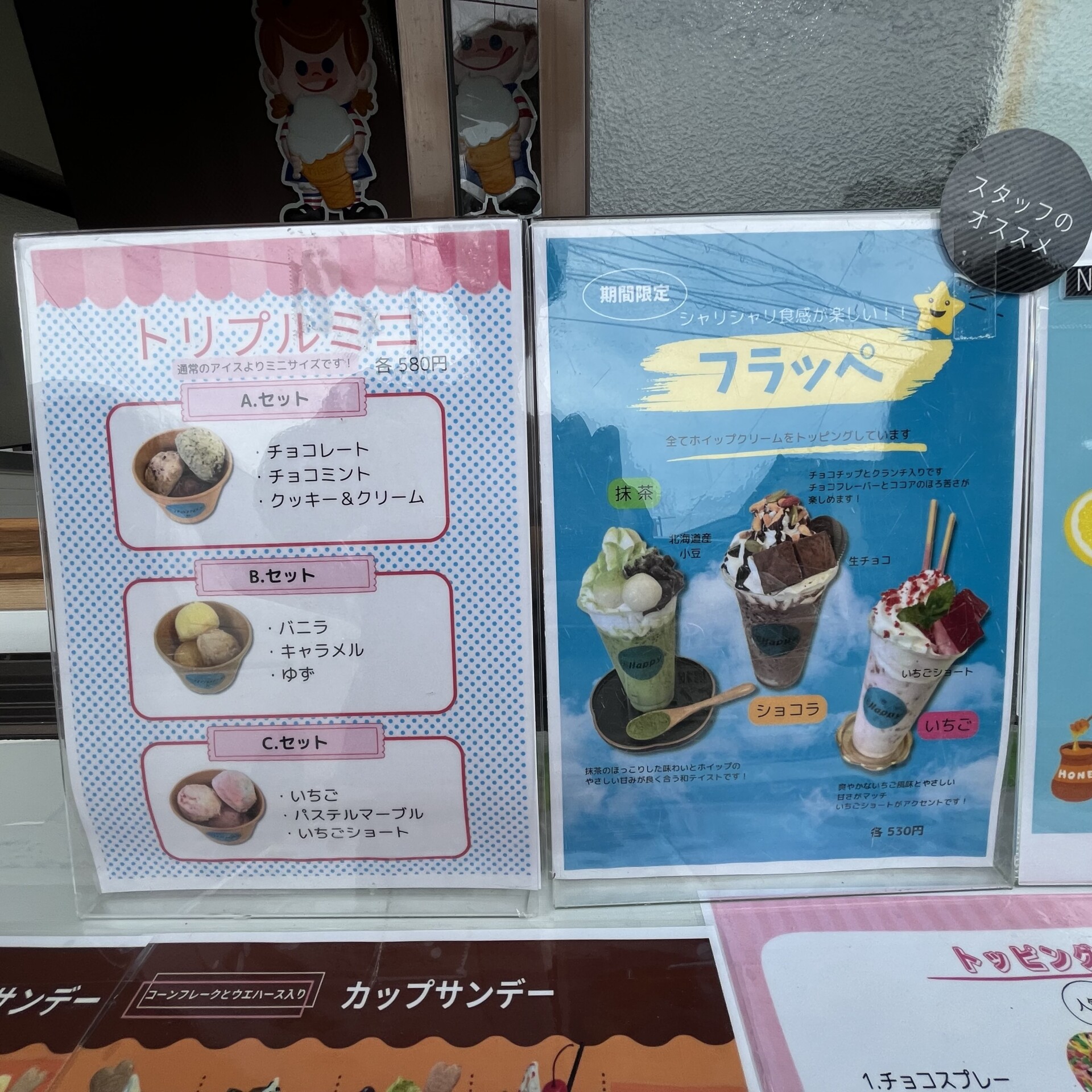 季節限定メニューや、トッピングも自由自在。