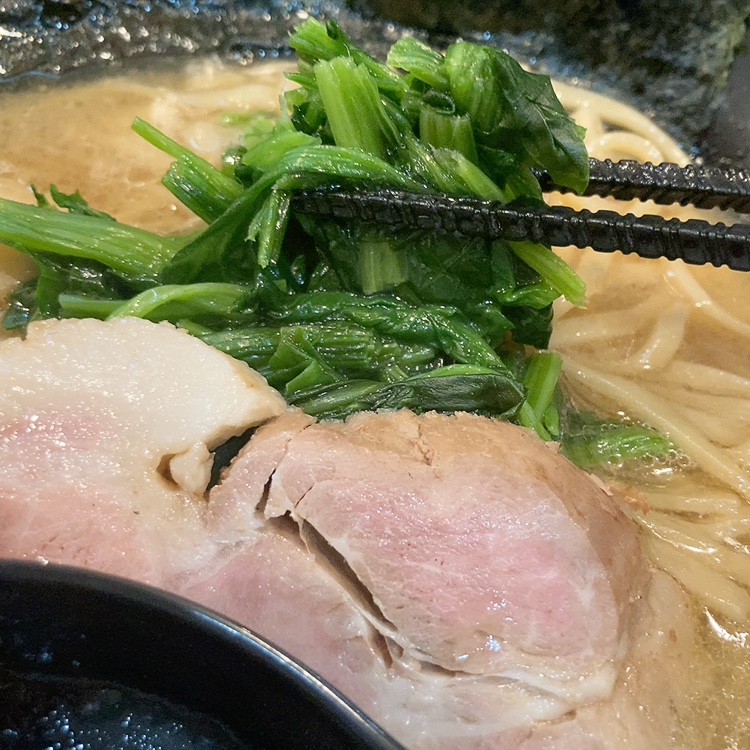 トッピングのほうれん草にチャーシュー。
