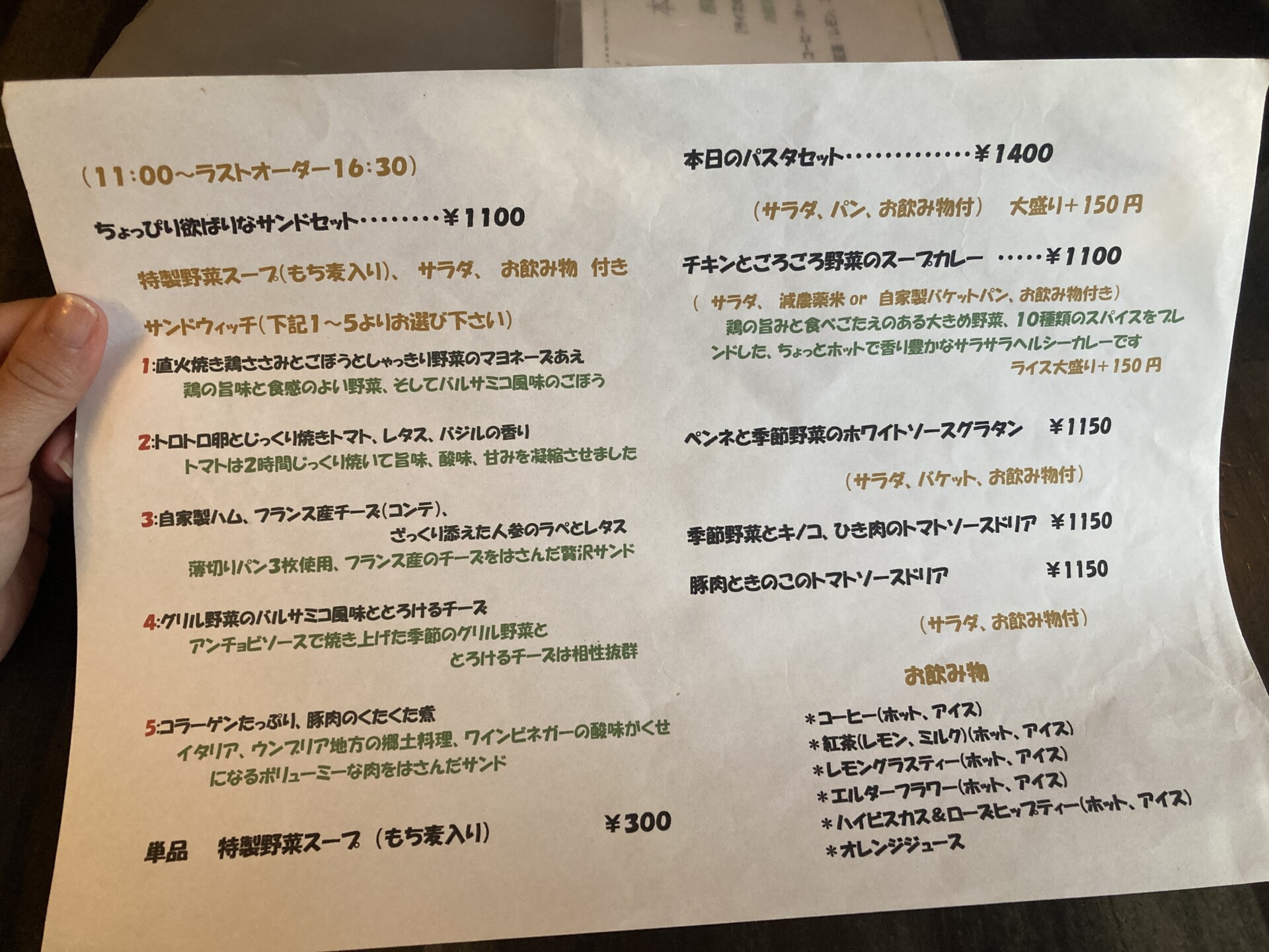 ランチメニューには「ちょっぴり欲張りなサンドセット」、「本日のランチセット」などがいただけます。