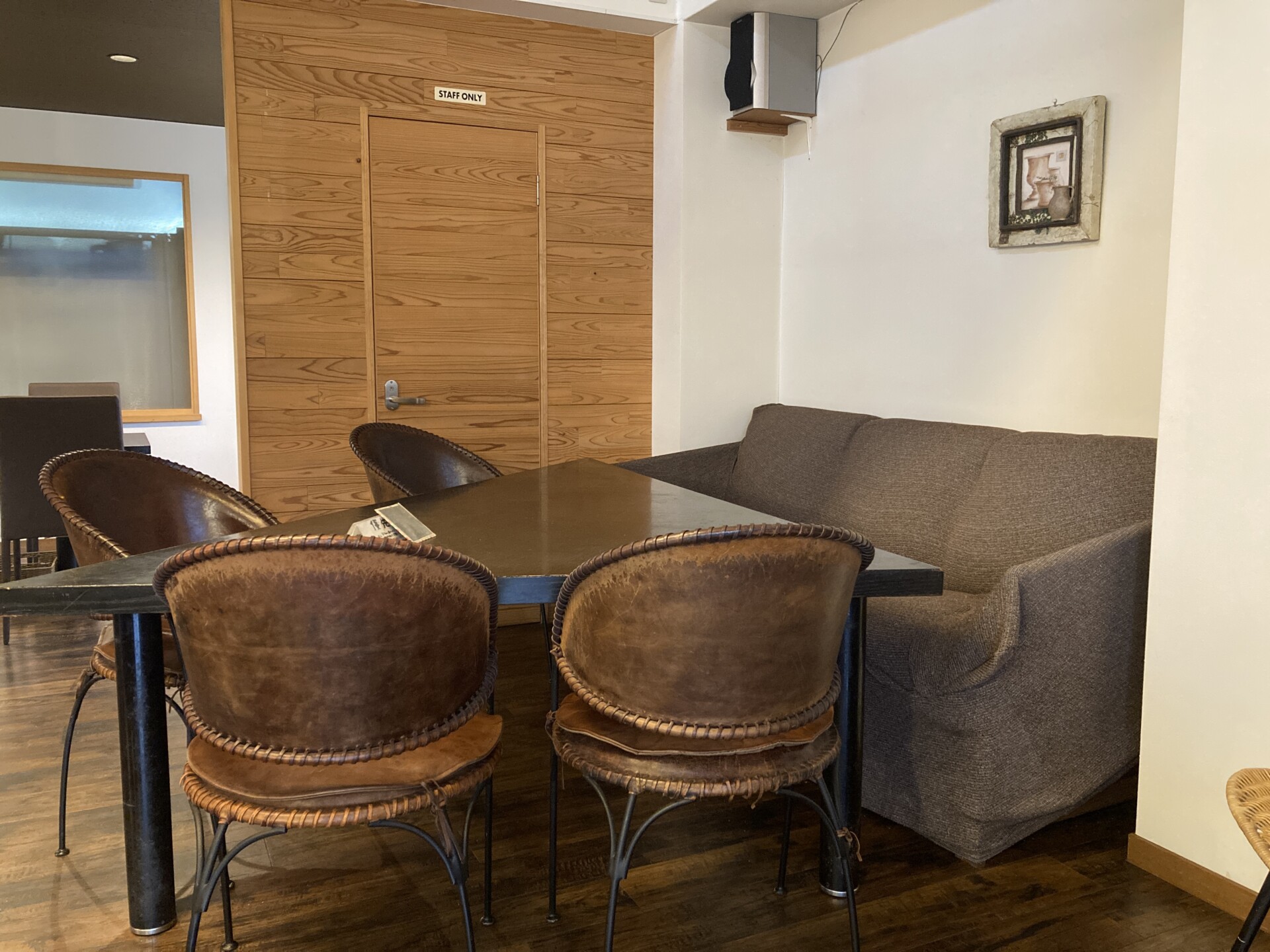 木の家具とやわらかな照明が心地よい空間を作り出しています。