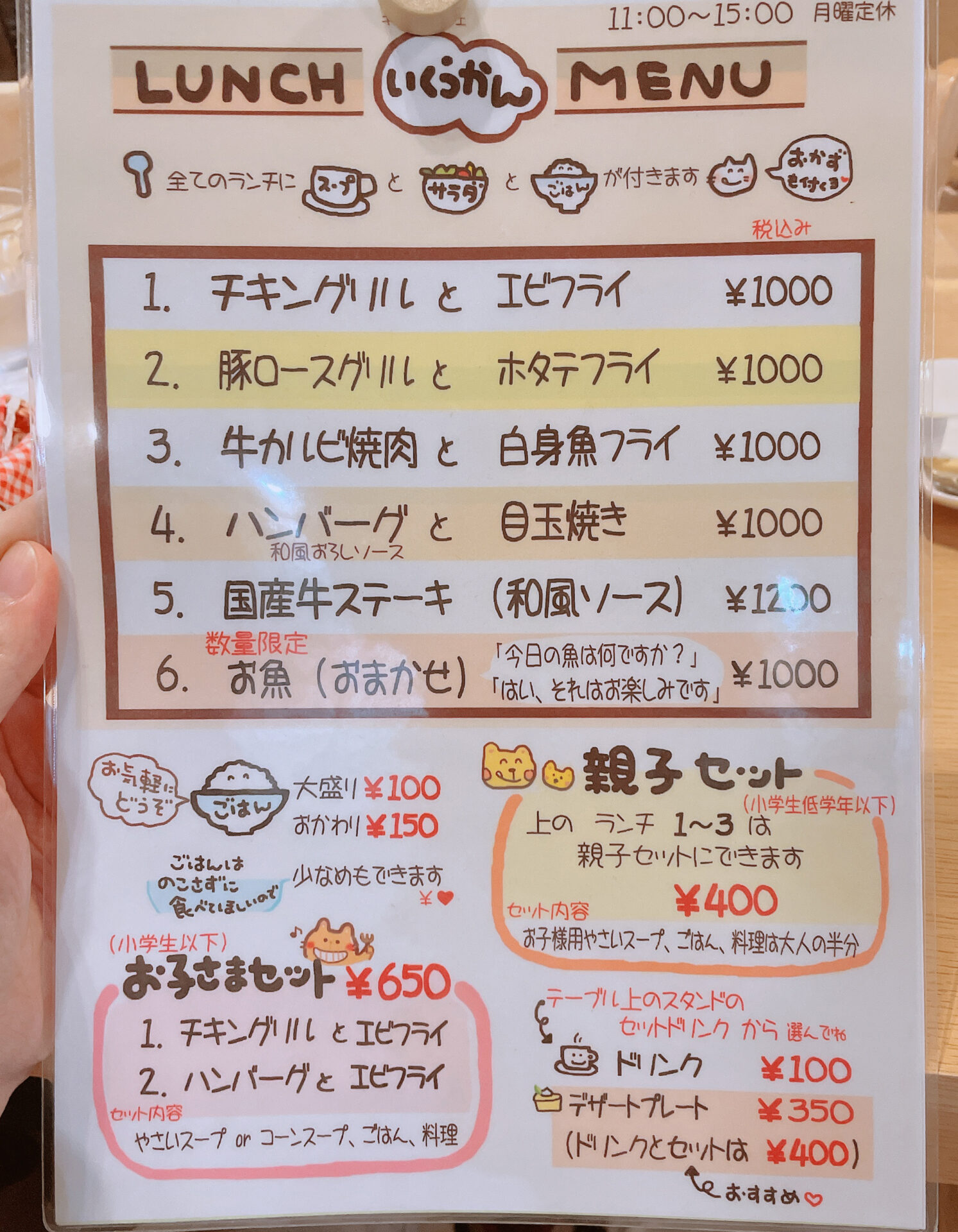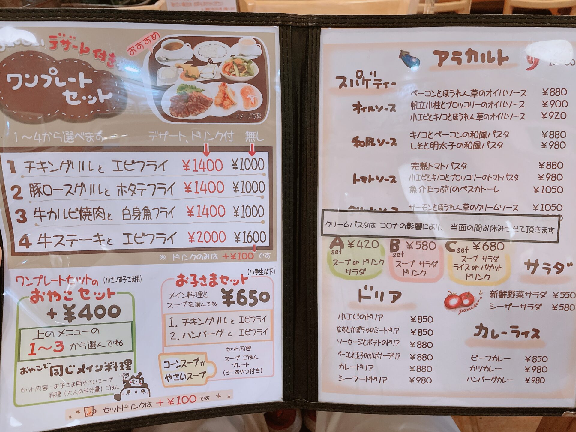 お店のメニュー