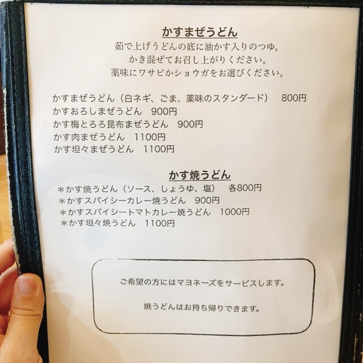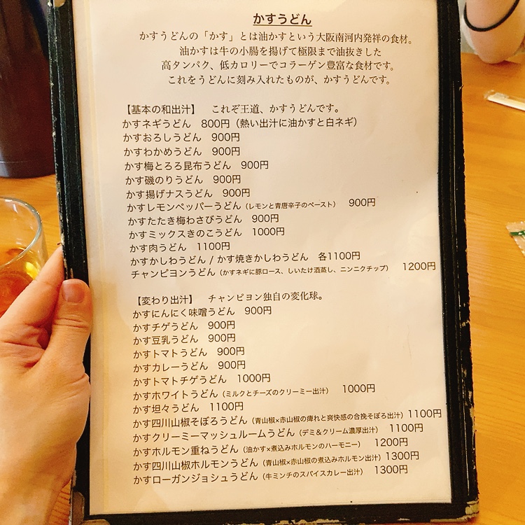 「かすうどんのチャンピヨン」のメニュー・料金など