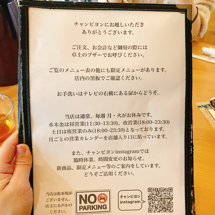 | 営業時間 | 水、木、金曜日 昼営業11:30〜13:30 夜営業18:00〜23:30 土・日曜日 夜営業のみ18:00〜23:30 |