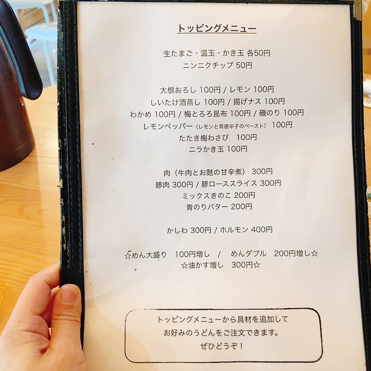 トッピングも種類豊富なので、自分だけのオリジナルうどんも注文できちゃいます♪
