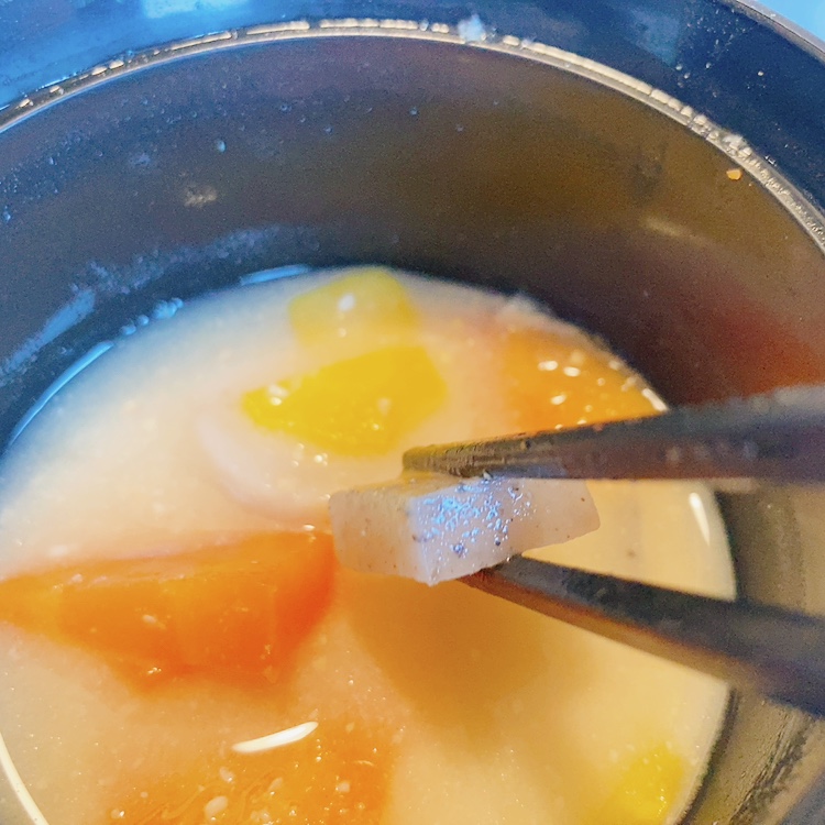 お味噌汁も具材がたっぷり。柚子が良いアクセントになっておりいつも一味違う味を楽しめました。
