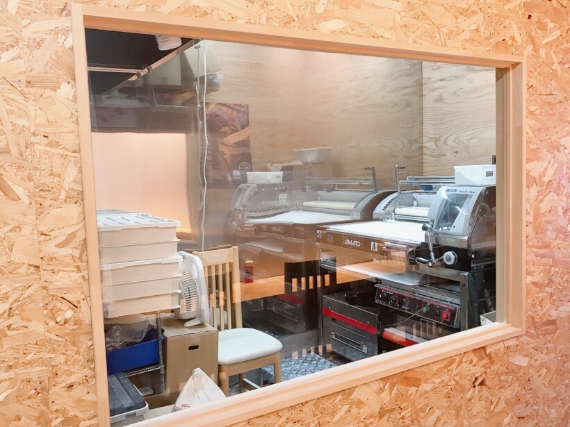 製麺マシンは、店内の大きなガラス窓からも見ることができます。