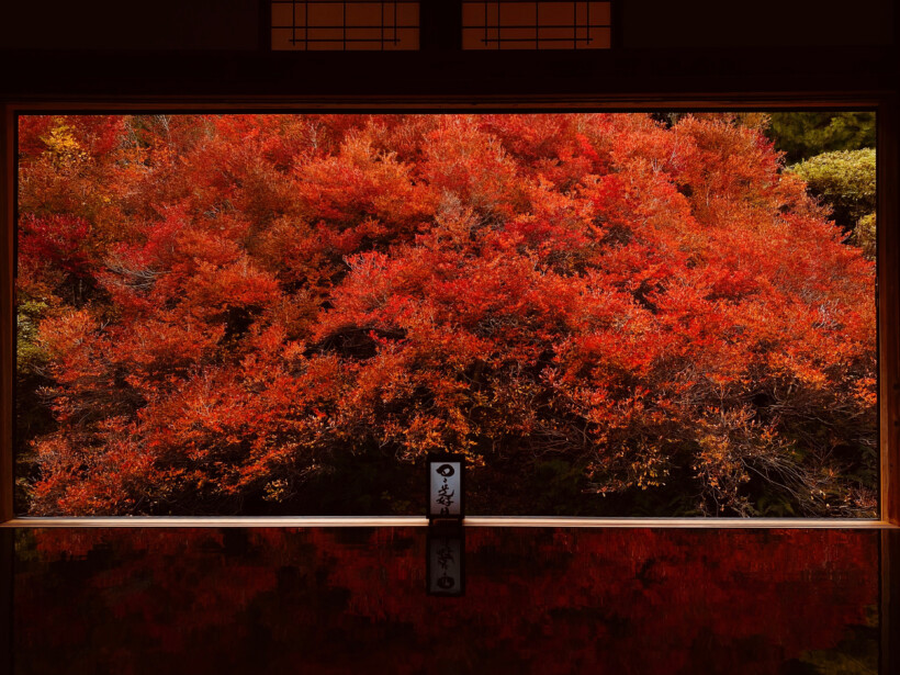 兵庫県豊岡市にある安国寺(但馬安國禅寺)では、本堂越しに見る裏庭のドウダンツツジが、まるで額縁に入った一枚の絵のように見えます。