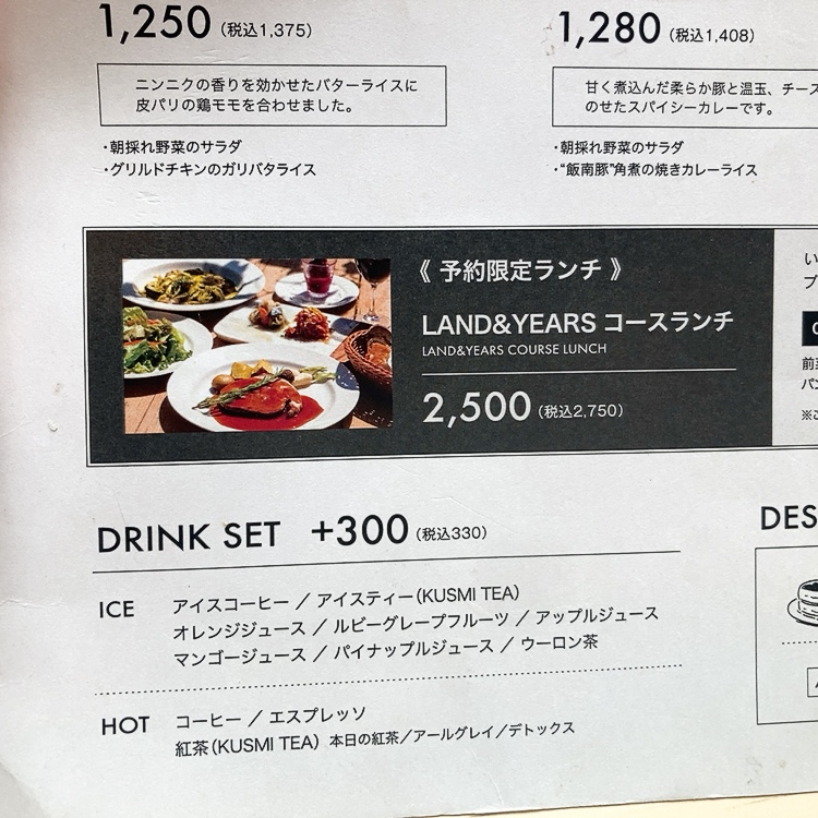 「LAND&YEARS(ランドアンドイヤーズ)」のメニュー・料金など