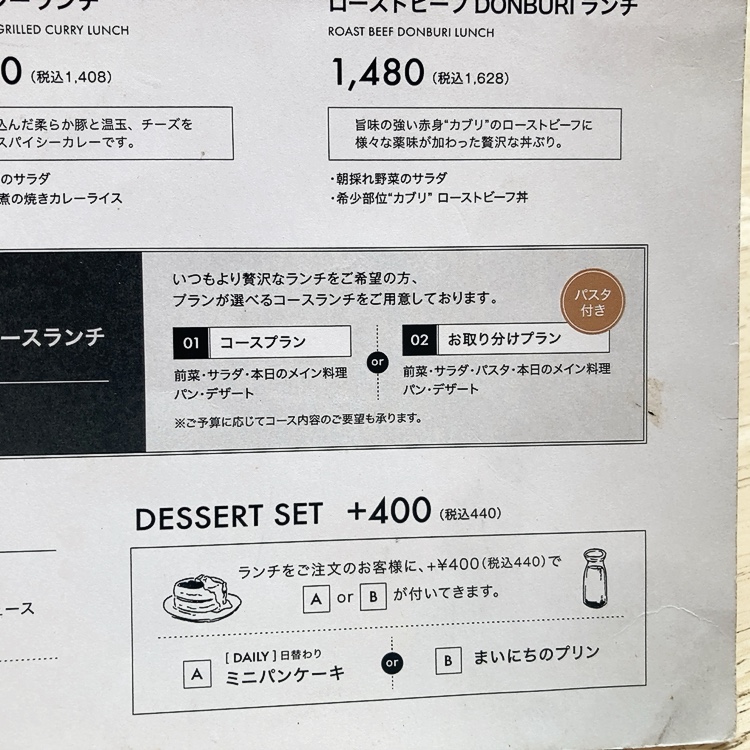 ちょっぴり特別な日にぴったりな予約限定のコースランチも用意されており、シーンに合わせて幅広く利用できます。
