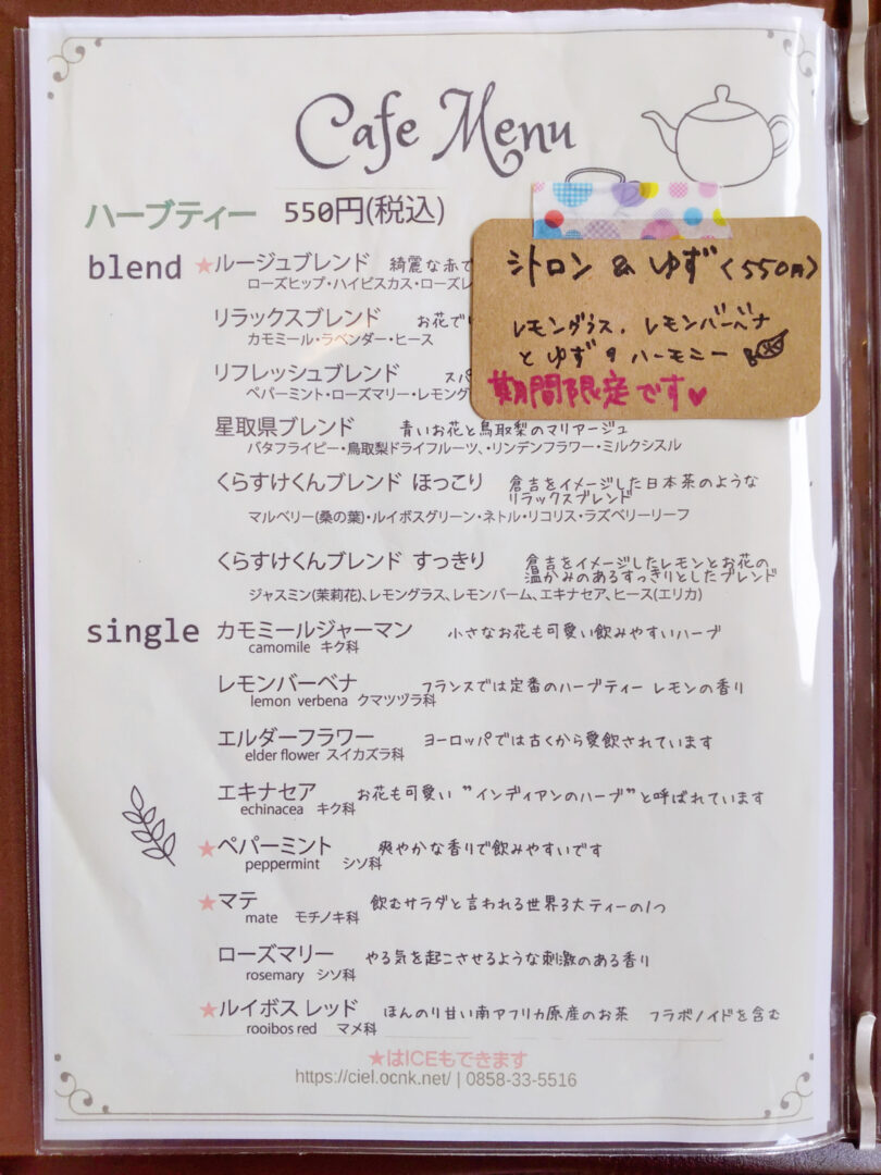 【倉吉市】「Le Ciel deux(ルシエル ドゥ)」ハーブティ初心者から上級者まで楽しめるオシャレなカフェ