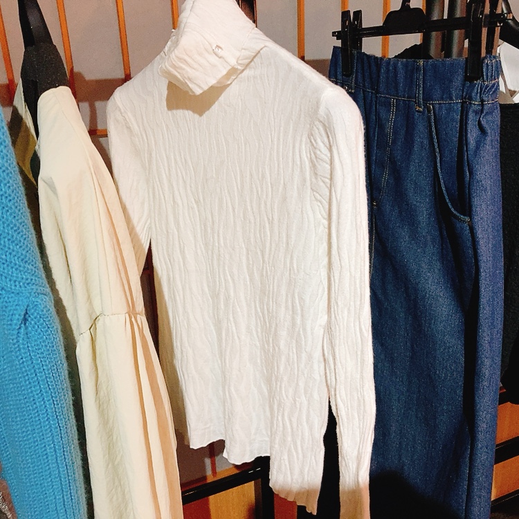 「まだ寒い時期にはタートルネックを仕込んで」「暖かくなったらシアー素材を仕込んだり、一枚サラリと着こなしたり」