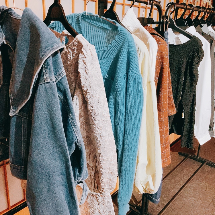 色物から、モノトーンでシンプル、モードな雰囲気のお洋服まで多種多様な素材や雰囲気のお洋服が販売されていました。
