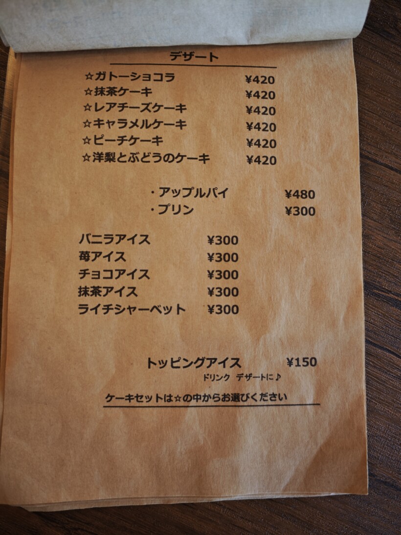 ランチ、ディナー、スイーツ、ドリンクメニュー