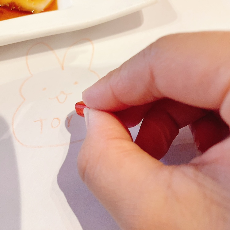 (お料理の待ち時間に、「tory」のキャラクターを書いてみました。下手なのはご愛敬で・・・)