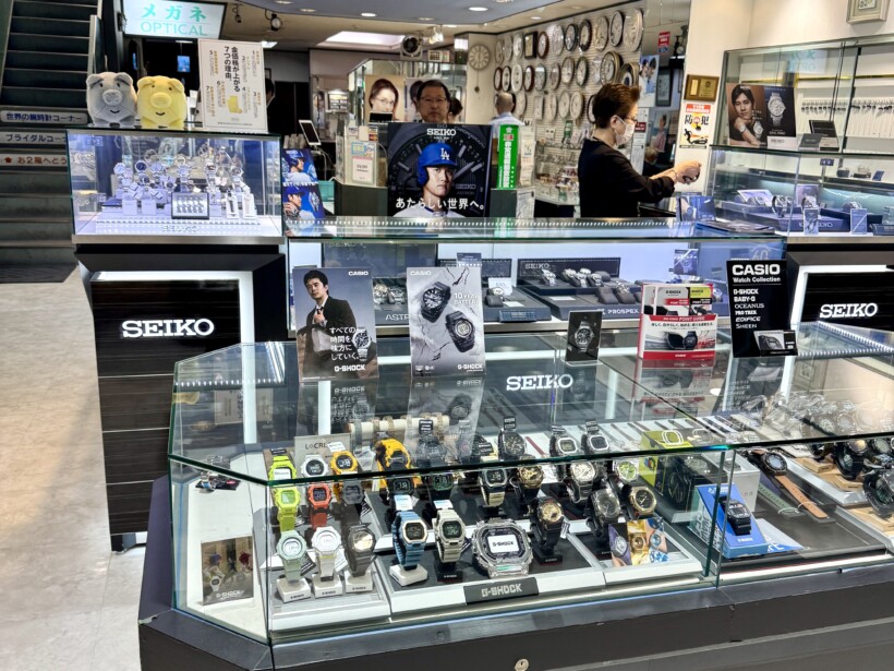 店頭では、国内外の有名ブランドの時計やジュエリー、サングラス、メガネ、補聴器などを取り扱っています。