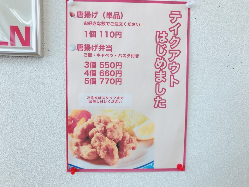 唐揚げ定食は、唐揚げの個数が選べます。唐揚げ(単品)、唐揚げ弁当のテイクアウトも可能です。