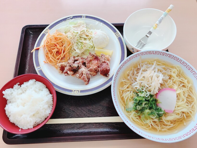 唐揚げ定食(4個・660円)+素ラーメンセット(300円)を注文しました