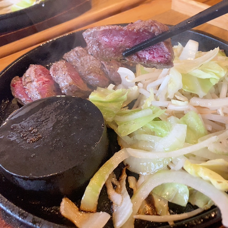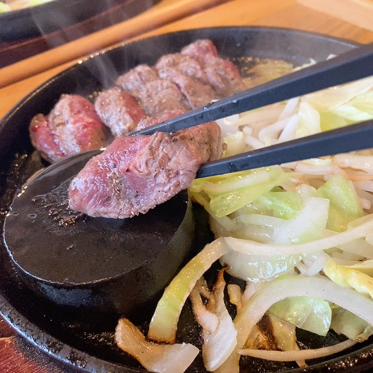 鉄板でジュージューと焼ける音とともにお肉が運ばれてきました!
