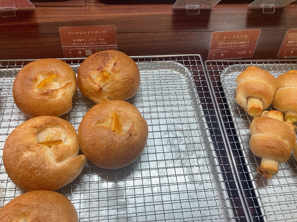 マーマレード×チーズ、チーズちくわ、黒オリーブとクリームチーズなどお食事やお酒のお供になりそうなパンもありました。